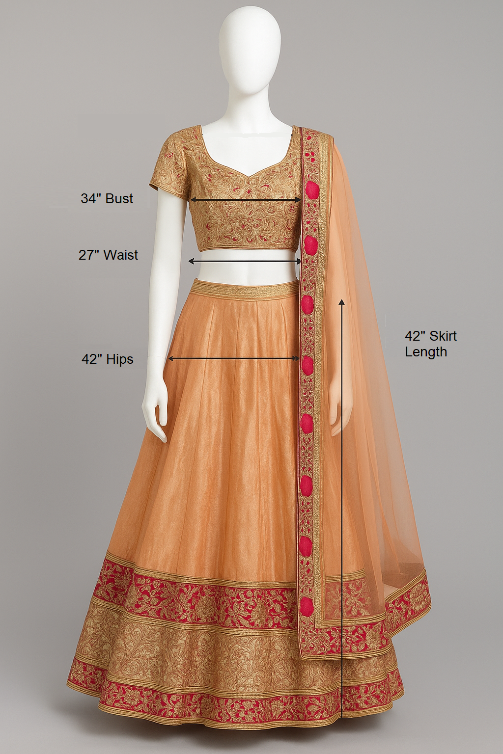Due to the nature of rental items, there will be some small imperfections to the garment, e.g., missing sequin or stone work. However, every care has been taken to ensure any minor imperfections do not affect you looking fabulous in the lehenga.